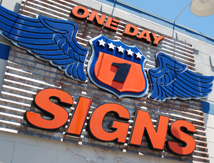 One Day SignsThe Visual Communication Specialists Anaheim, Orange County, CA Please use the following specifications when building and sending your files to ensure the highest quality output. FULL COLOR - File requirements for digital output We prefer .eps or .pdf files that are print ready, meaning files are built to final print size, the text has been converted to outlines, and any images are embedded (not linked) and at full resolution. Accepted Applications : Files created in and saved as: • .psd Photoshop, up to version CS2 • .ai Illustrator, up to version CS2 • .cdr Corel Draw, up to version 10 • .qxd QuarkXpress, 4 Accepted File Formats: Applications that export/save the following file formats are acceptable: • .eps • .jpg • .tiff *Note: Files saved at the final print size should be at least 150dpi. Files that need to be enlarged should be saved at a higher resolution so that upon resizing they can be resampled up to 150dpi and not loose any image quality. Images taken from the internet and business cards are often times too small to use for large format prints, and can be used for quotes, but not final production. When sending files with linked artwork be sure to include the hi-res images and any fonts that are included in the layout. VINYL - Vector files for vinyl letters and logos Accepted File Formats: Applications that export/save the following file formats are acceptable: • .eps - Encapsulated Postscript (must be a vector file, not bitmap) • .ai - Adobe Illustrator - up to version CS2 • .cdr - Corel Draw - up to version 10. Fonts: When designs created in drawing programs as described above include any fonts, it is important that they are converted to outlines, curves or paths. While fonts may share the same name, across platforms or operating systems there are subtle differences in the design and size, so in order that your fonts retain their original size and design it is important that all fonts be converted to curves. This will eliminate the need to send us a copy of the fonts used. Scanned Artwork / Logos: When the original artwork (file) created in a drawing program as described above cannot be provided to us, an option is to scan the artwork and recreate it using our software, this will incur additional charges and the outcome of the file will be dependent on several factors. The best artwork will be simple line art / graphics or clean single color design elements. Fonts used within the design may be on our system in whitch case the file will look like the original, otherwise there may be slight changes. Artwork not suitable will be old business cards with poor resolution or very small graphics. Most of the time business cards are all we need to create a vector file but keep in mind that the cleaner the edges of the design elements the better the scan. Business cards with bitmap images (pictures) cannot be scanned and converted to vector files. Following the above requirements should provide us with files that can be output with minimum issues that need to be resolved using our software, not following these requirements may result in added charges, if you have any questions please contact the digital dept. before sending us the final artwork files.